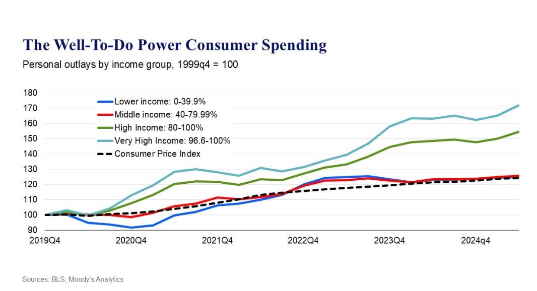 Lots of economists have theorized that the outsized spending of the wealthiest Americans has actually helped our economy avoid a recession this year. But their spending can’t stave off the inevitable forever, and their spending isn’t circulating through the communities where working Americans live.