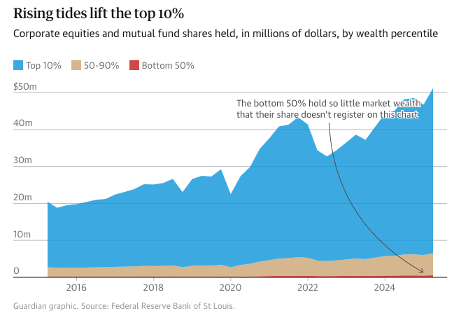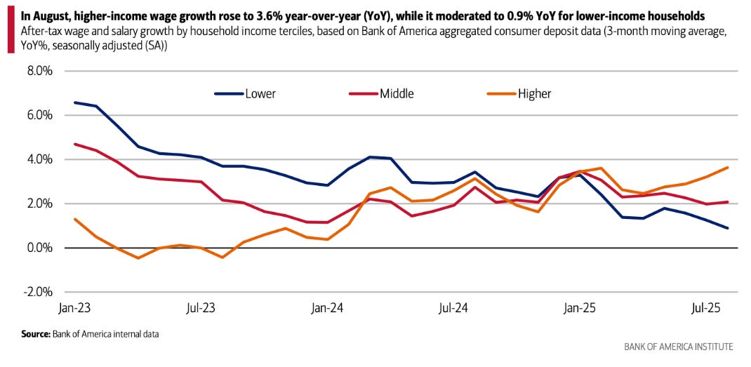 The danger has become a reality. Virtually every economic chart I share in The Pitch these days reflects that K-shape, which denotes massive inequality benefitting a small handful of people at the expense of everyone else. You can measure that in wage growth: