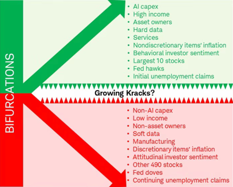 If you’re a regular reader of The Pitch, none of this should come as a surprise to you. But the number of people warning about the K-shaped economy has grown over the years, and the number of skeptics has dwindled. But as of last month, the K-shaped economy has broken into the mainstream of American economic policy. The Charles Schwab 2026 economic outlook I mentioned earlier in this issue even devoted an excellent graphic to the growing threat of the K-shape: